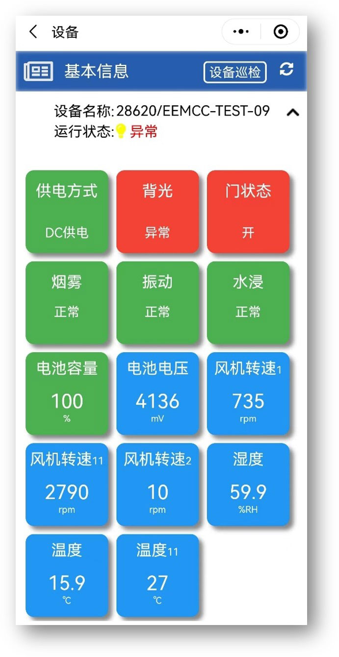 微看科技环境集控器(EEMCC),是针对智慧健身房运动场馆等环境监测和控制的高端方案,赋能智能物联网构建。EEMCC集成了温湿度监测、震动检测、烟雾检测、水浸检测、开关门检测、电流检测等多种工作环境检测和告警功能,实现环境温度变化中自动与空调新网系统联动。 集控器内置全网通4G物联网模块,可通过4G网络实现在线实时通信,上传数据至云端服务中心,用户可通过浏览器或手机小程序随时随地查看监测数据,同时及时下发指令给集控器,实现重启等控制。 同时,本集控方案可根据不同应用场景,通过预留的外围接口灵活选择不同的传感器进行组合应用。